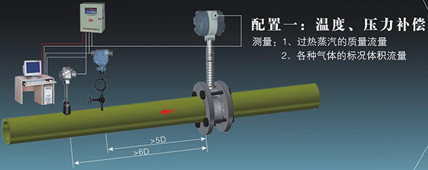 5、表體中同時集成溫壓補償補償功能,可測量流體的標準體積流量或標準質量流量。