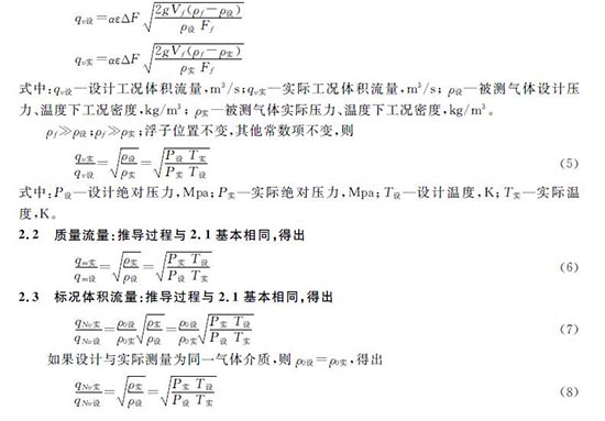 流量計在測量氣體介質時,當氣體溫度、壓力不穩定,造成被測氣體工況密度變化較大時,流量指示誤差增大,此時應進行溫度壓力補償計算,恢復儀表測量的準確性。具體推導、計算如下: