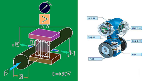 由上式可見,體積流量qv與感應電動勢e和測量管內徑D成線性關系,與磁場的磁感應強度B成反比,與其它物理參數無關.這就是廢液管道流量計的測量原理.