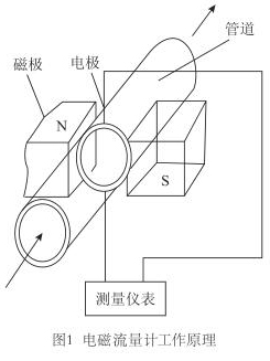 智能電磁流量計是應用電磁感應定律,即:導電體在磁場中運動產生感應電動勢,而感應電動勢又和流量大小成正比,通過測電動勢來反映管道流量的原理而制成的,用來測量導電流體的體積流量(見圖1)。工業上多用以測量水、礦漿、各種酸、堿、鹽等腐蝕液體等介質的流量。