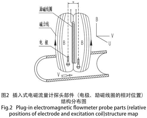 電磁流量計(jì)的測量探頭測得管道內(nèi)部特定位置(管道內(nèi)徑的 1/8 處)的局部流速,以確定管道流速,電磁流量計(jì)的傳感器是在測量探頭外側(cè)形成外發(fā)射磁場,測量電極在傳感器的端部。