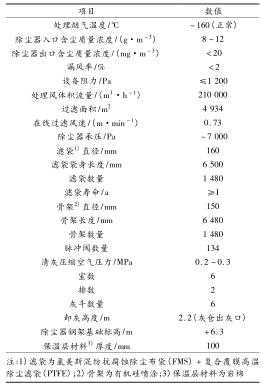(2) 新建布袋除塵及氣力輸灰氦氣流量計(jì)。采用長(zhǎng)袋低壓脈沖袋式(外濾式)除塵器,煙氣體積流量為 210 000 m 3 /h,初 始 含 塵 質(zhì) 量 濃 度 為 8 ~12 g/m 3 ,除塵占地面積為 20 m 2 (5 m ×4 m)。除塵器主要由本體、壓縮空氣系統(tǒng)、控制系統(tǒng)、輸灰系統(tǒng)組成。除塵器后進(jìn)脫硫塔煙塵質(zhì)量濃度≤20 mg/m 3 。除塵器的總阻力≤1 200 Pa。新建布袋除塵器型號(hào)為 LCMD-4934,設(shè)計(jì)參數(shù)見表 2,其中清灰方式采用離線清灰,除塵器布置方式為矩形布置,電氣控制采用可編程邏輯控制器(PLC)。