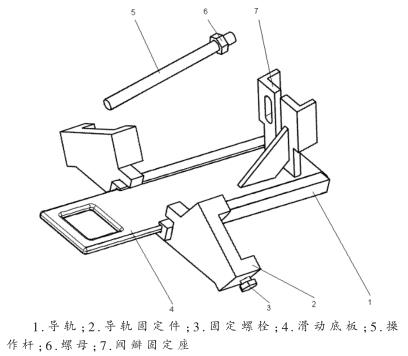 (1)閥瓣拆裝及接觸試驗模塊的特點閥瓣拆裝及接觸試驗模塊主要由導軌、導軌固定件、滑動底板、操作桿、固定螺栓、閥瓣固定座等零部件組成。
