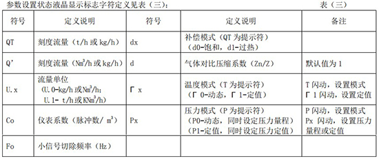 設置小數點:直接按 SET 鍵確認,進入默認流量參數設置菜單,顯示屏顯示 QP,按數字↑ 鍵設置標志位。按數字← 鍵設置小數點,按→鍵可以返回菜單選擇項。