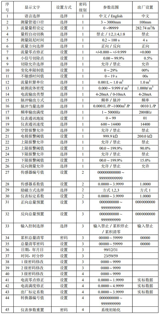在該參數設置中,用戶置入“積算總量清零”的密碼,儀表確認密碼無誤后,自動完成積算量清零。同時將三個積算器清為零值,重新開始累積。